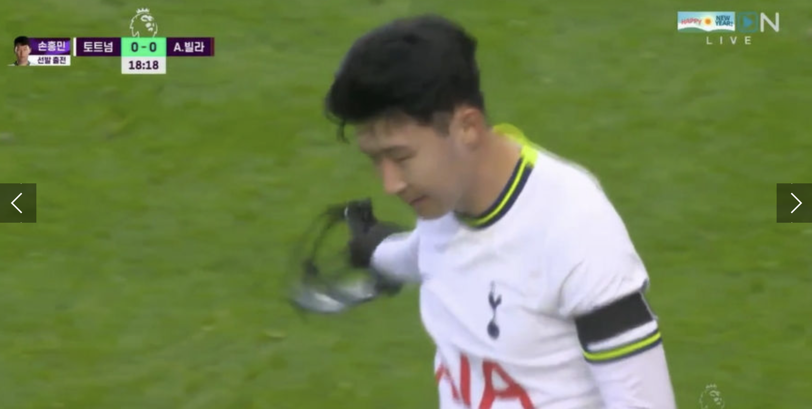 새해 첫 날인 1일(한국시간) 영국 런던의 토트넘 홋스퍼 스타디움에서 킥오프 된 2022~23시즌 잉글랜드 프리미어리그 18라운드 토트넘-애스턴 빌라전. 0-0으로 맞선 전반 18분 토트넘 공격수 손흥민(31) 쓰고 있던 검정색 안면 보호 마스크를 벗어 던졌다.