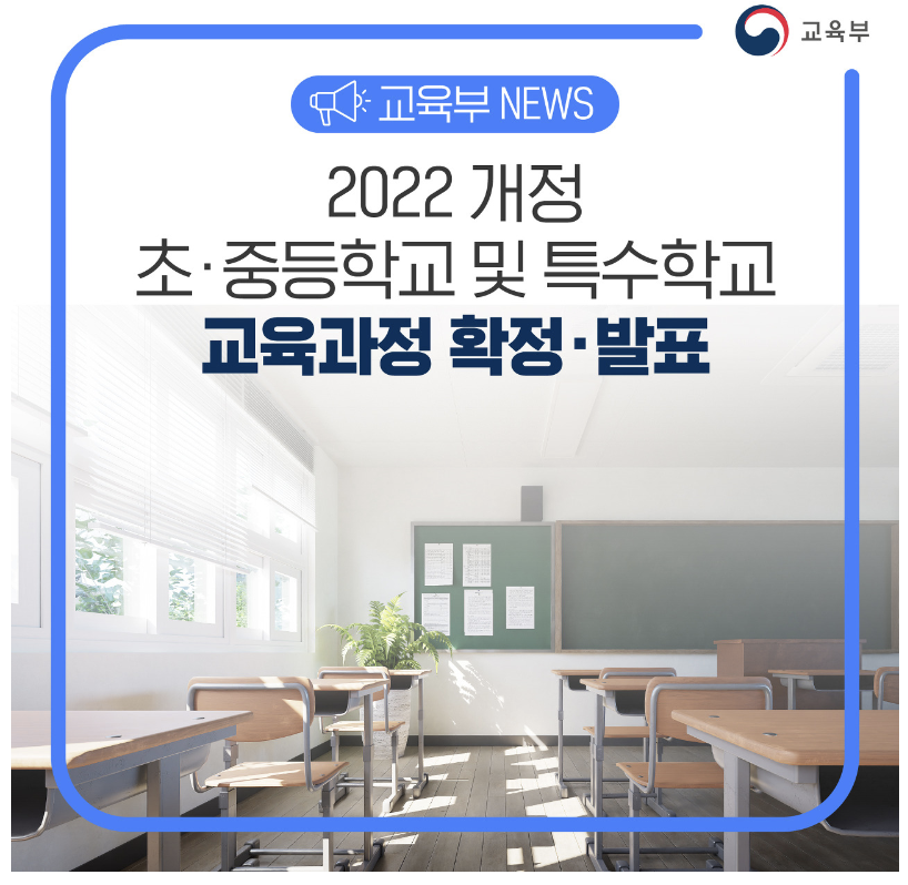교육부(부총리 겸 교육부 장관 이주호)는 12월 22일(목), 우리 아이들이 미래사회가 요구하는 ‘포용성과 창의성을 갖춘 주도적인 사람’으로 성장할 수 있도록 「2022 개정 교육과정」을 확정·발표하였다.